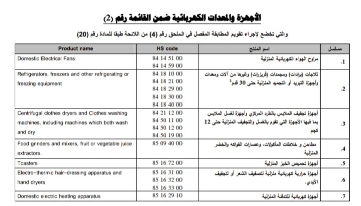 - تخضع الأجهزة والمعدات الكهربائية في القائمة (2) لإجراء تقويم المطابقة المفصل في الملحق (4)القائمة (2) – إلزامي شارة المطابقة الخليجية G Mark.