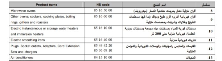 تشمل اللائحة مجموعة متنوعة من الأجهزة و المعدات الكهربية منخفضة الجهد وملحقاتها: