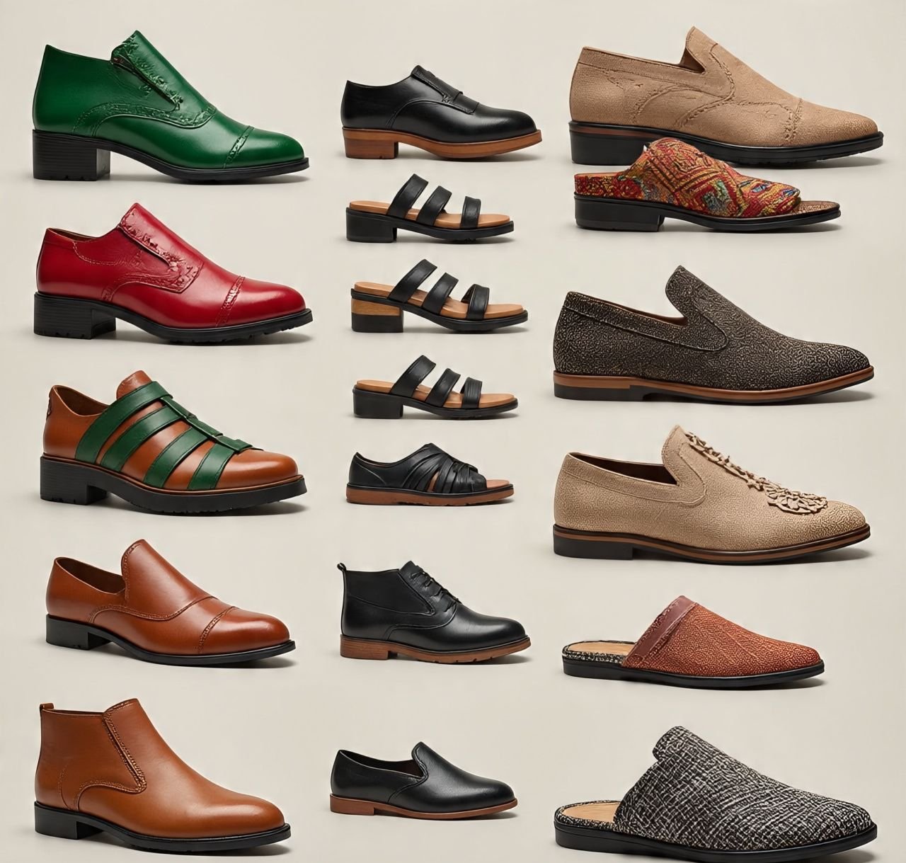 • جميع أنواع الأحذية (رجال – نساء – أطفال) المصنوعة من:الجلد الطبيعي أو الصناعي اوالنسيج او البلاستيك أو خليط من هذه المواد
